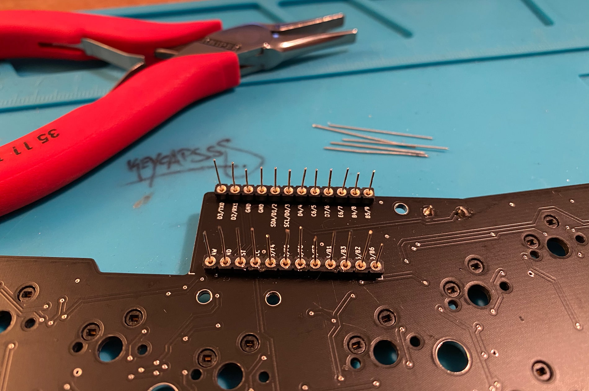 Check that all pins from the switches are straight and not bent. This is important that all pins move into the switch sockets in the next step.